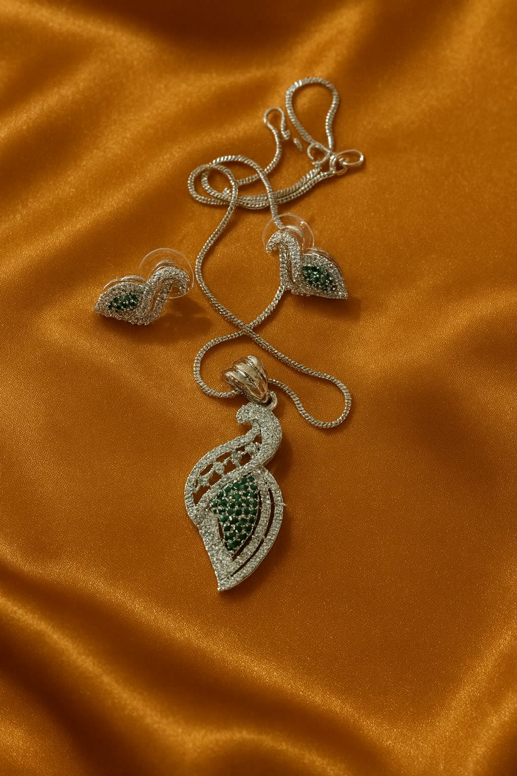 Peacock Feather Inspired Silver AD Pendant Set