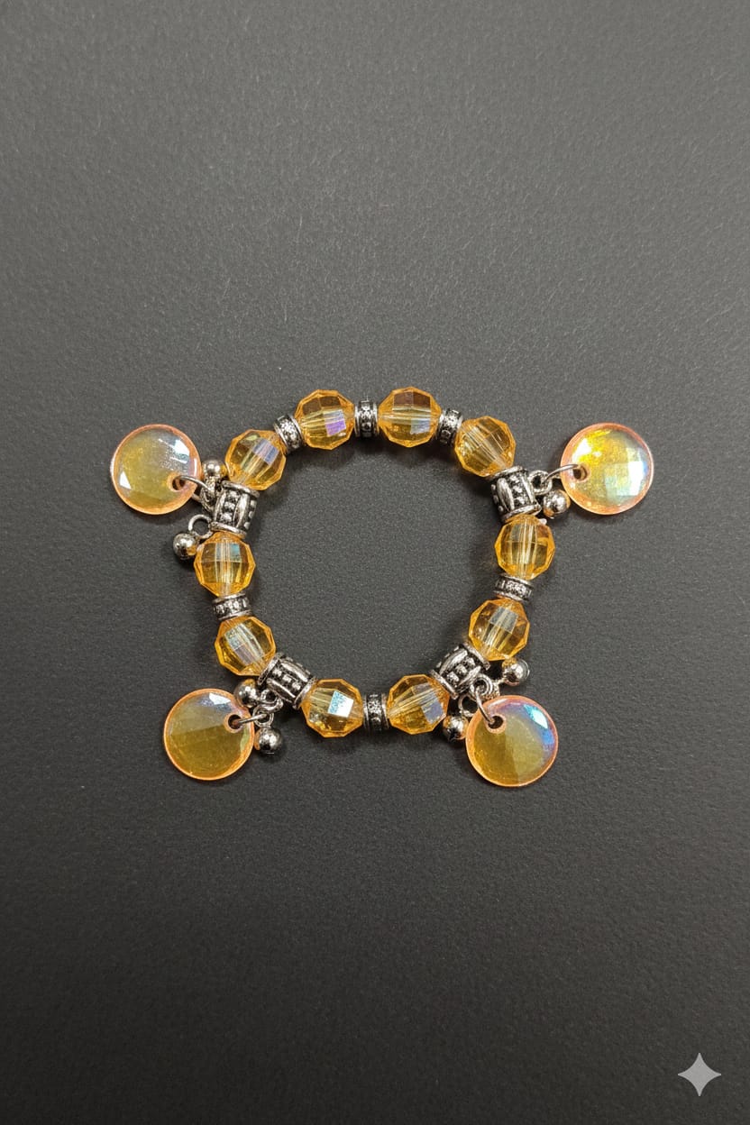 Amber Crystal Charm Stretch Bracelet.