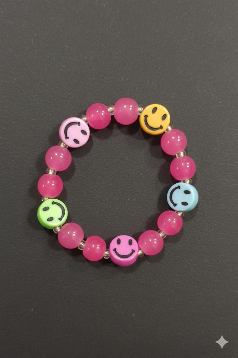 A bright and playful stretch bracelet made with glossy pink beads and colorful smiley-face charms. Fun, lightweight, and perfect for adding a cheerful pop of color to everyday outfits. 💗😊