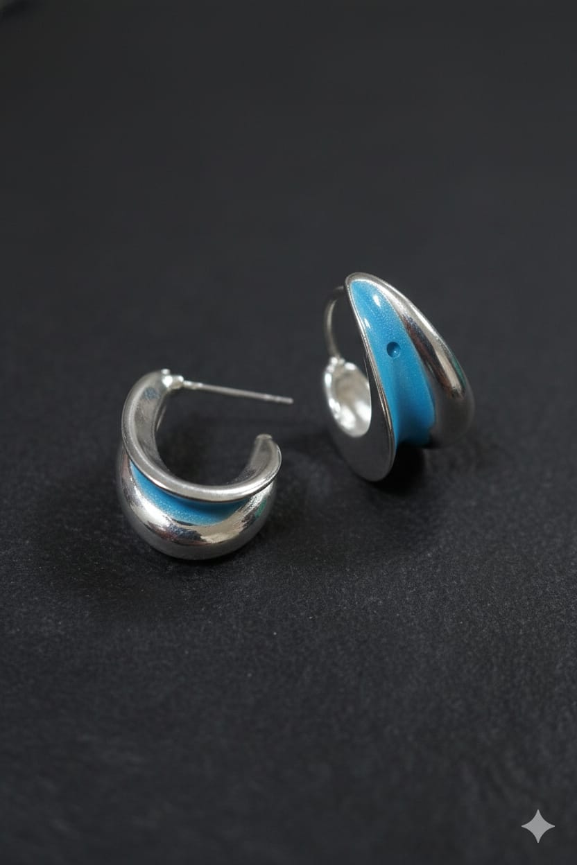 Modern silver-tone half-hoop earrings accented with a glossy purple enamel finish, designed for a sleek, minimal look that adds a pop of color to everyday and office wear.