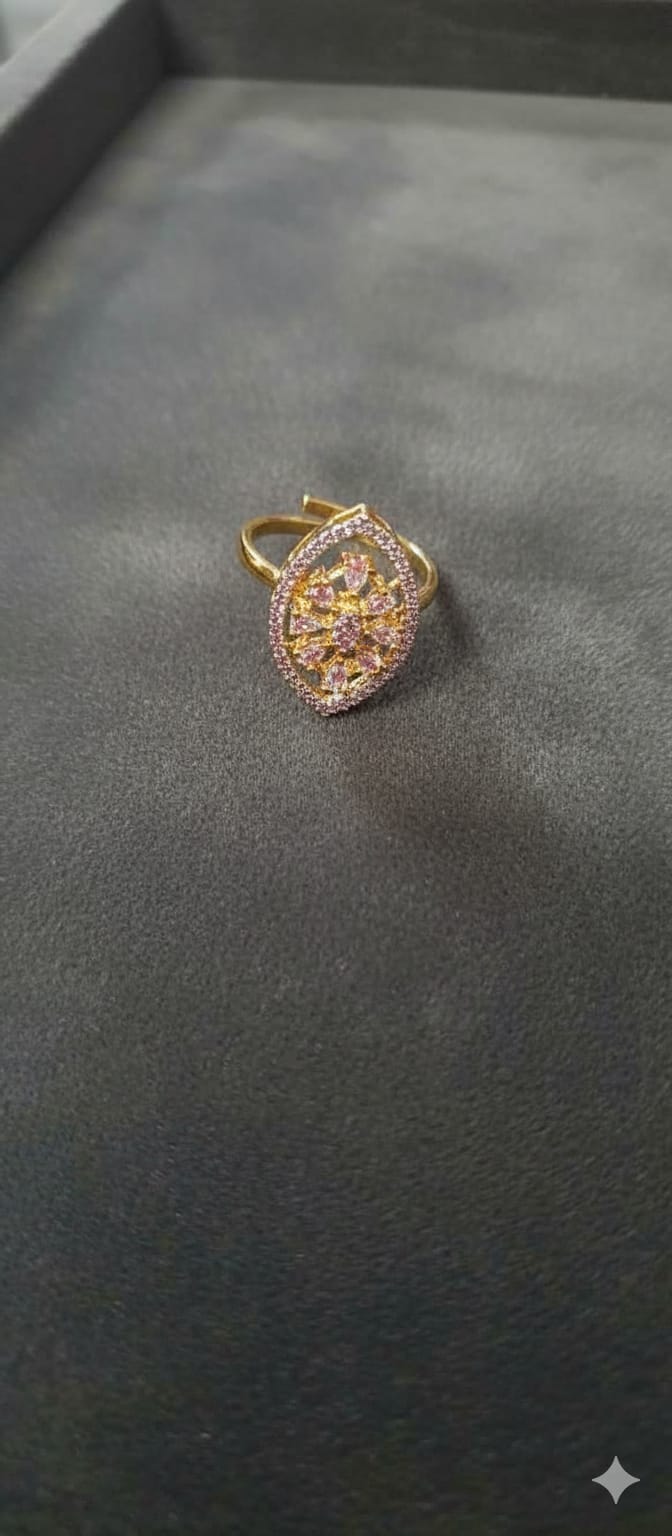 This is a delicate, gold-toned adjustable ring featuring a sparkling, nature-inspired circular centerpiece.