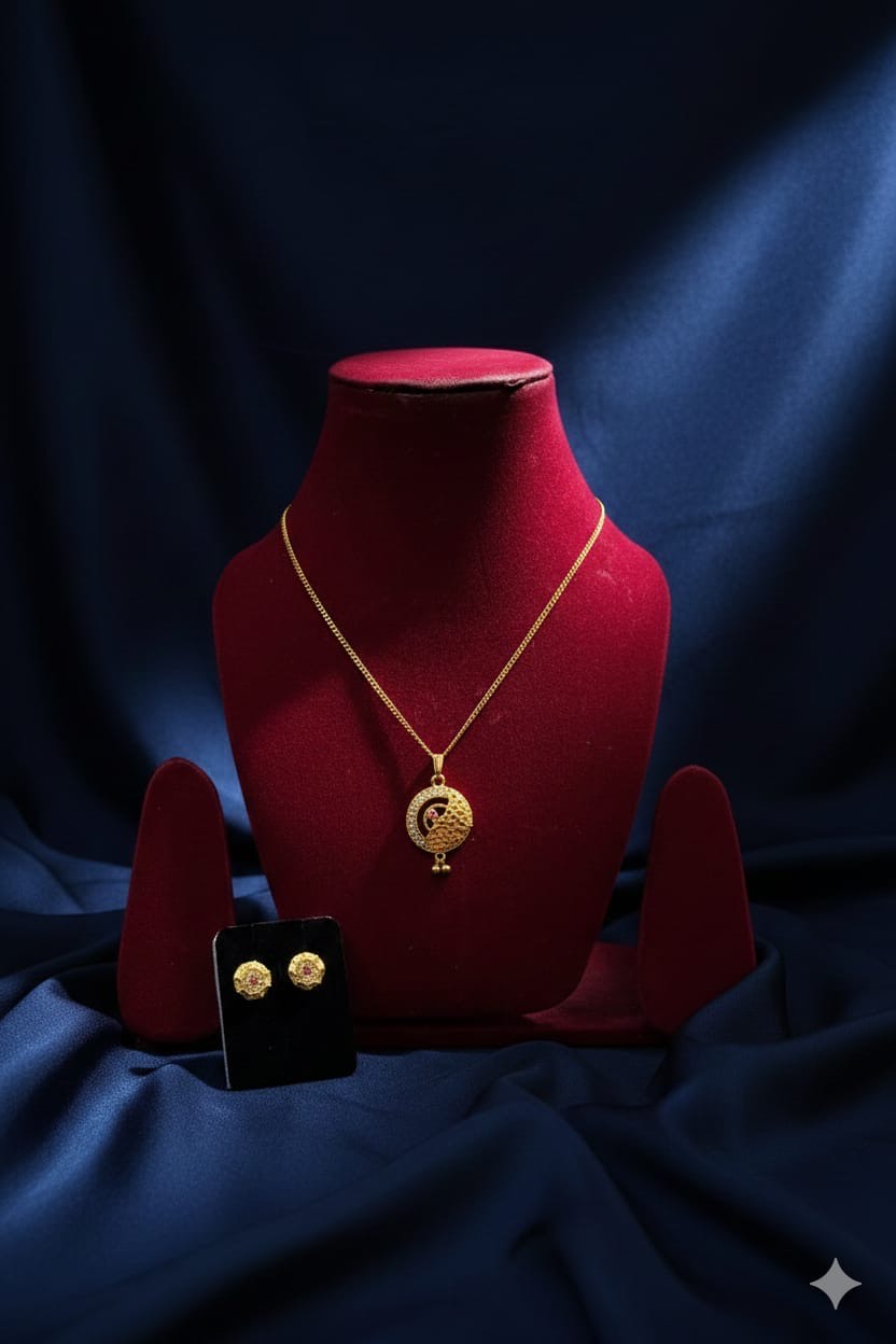 A beautifully crafted gold-plated floral pendant set that brings royal charm and subtle sparkle to special occasions.